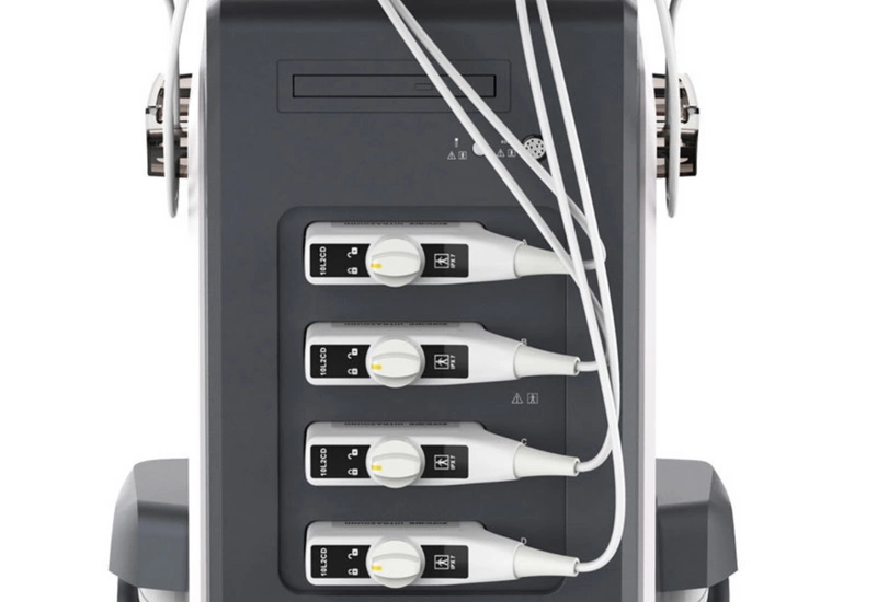 Dzięki czterem uniwersalnym złączom sond aparat oferuje wyjątkową elastyczność w diagnostyce i umożliwia szybkie przełączanie się między różnymi typami badań.